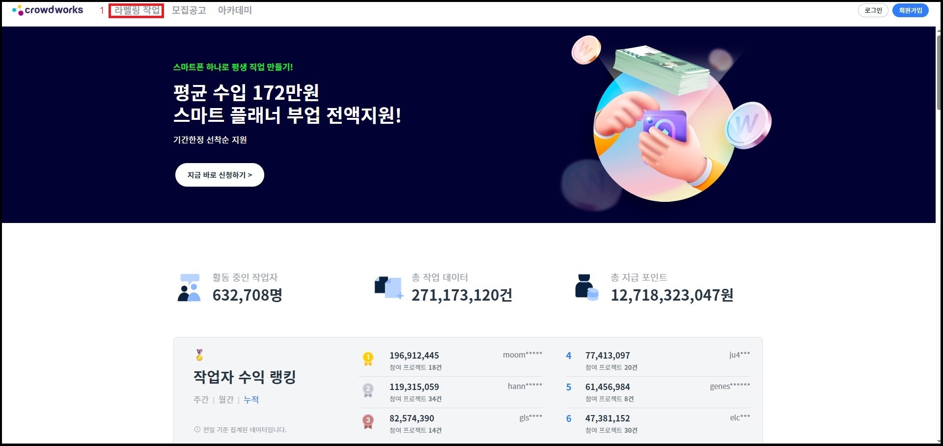 기업·기관이 의뢰한 텍스트, 이미지, 음성 데이터를 일반인이 작업할 수 있도록 오픈해 두었고,